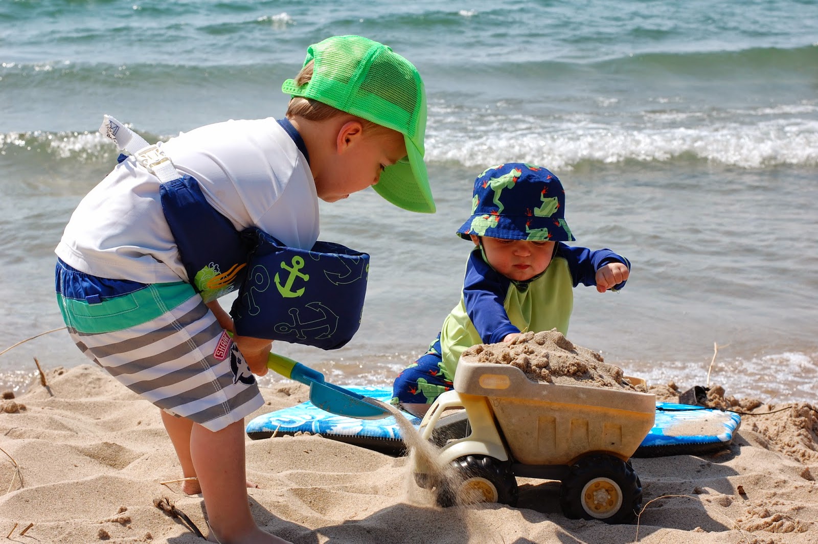 I attempted to get a picture of both boys on the beach looking at the camera but I should have known that wouldn't happen. I had to settle for some action pics which I think are pretty cute anyways.